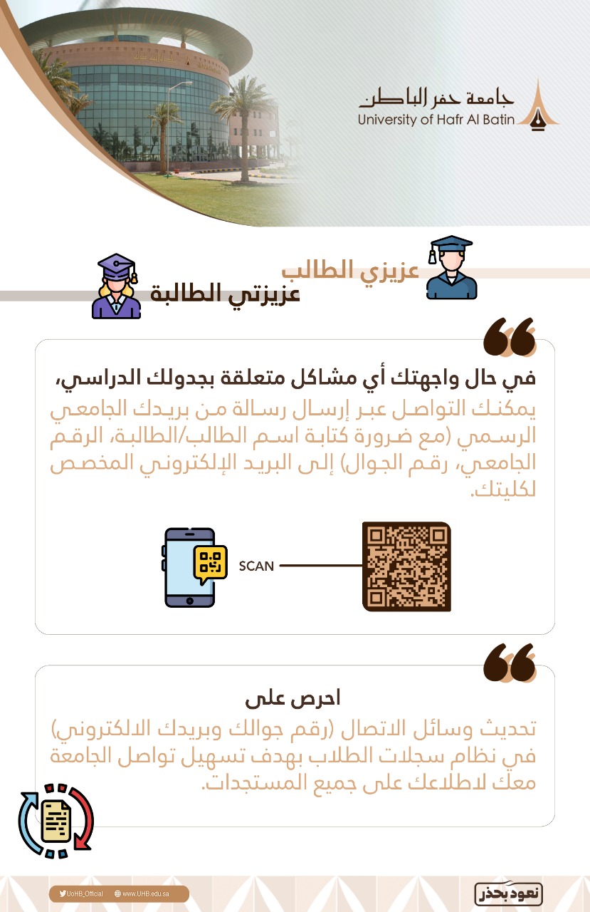 بكل السعادة أرحب بكم في هذا الموقع الخاص بالخدمات الإلكترونية للطلاب جامعة حفر الباطن وبكل الآمال أرجو أن تكون المعلومات المتوفرة على هذا الموقع نافعة ومفيدة وبكل الرحابة تبقى قلوبنا مفتوحة لكل رأي وفكرة يكون.