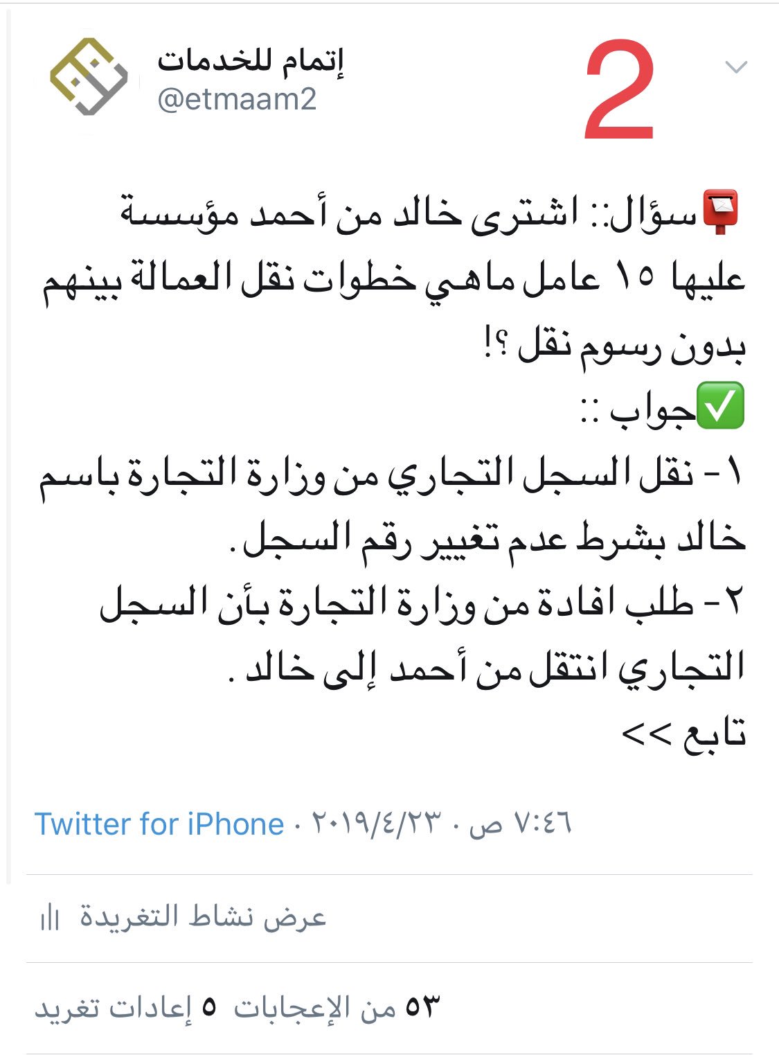 خدمة تمك ن المنشآت من نقل خدمات تابع أو تابعة من فرد إلى منشأة. الضوابط والشروط أن تكون جميع تراخيص المنشأة سارية الصلاحية بما في ذلك اشتراك خدمة العنوان الوطني لدى البريد السعودي. مع جزيل الشكر والتقدير. يوضح عدم وجود أي مانع للتنازل عن خدمة المكفول المذكور أعلاه و سوف نقدم لكم صورة من جواز السفر الخاص به بعد الانتهاء من اجراءات نقل الكفالة.