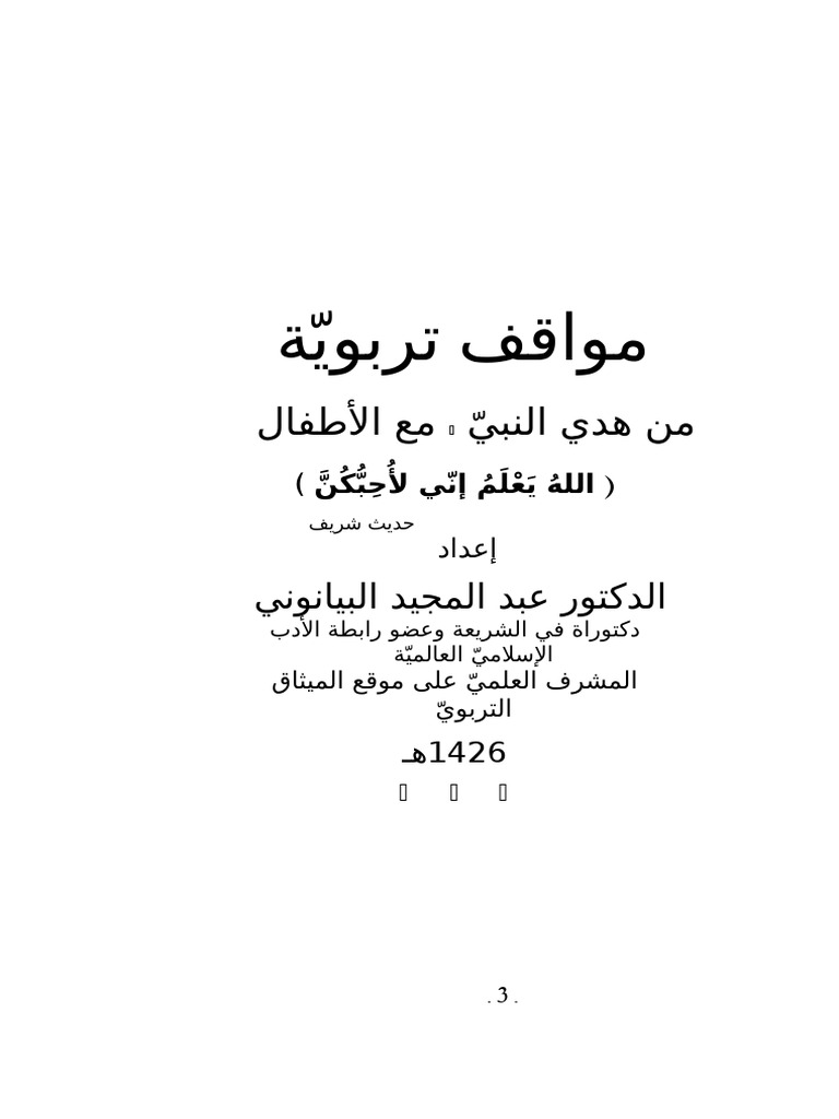 إن نظرت إلى رسول الله صلى الله عليه وسلم في مواقفه مع الأطفال وجدته أحسن الناس تربية وأكثرهم عطف ا وحنان ا. هدى النبي في التعامل مع الأطفال. إطعامهم وكسوتهم بمثل مأكل وملبس من يمتلكهم فهناك من ي قد م لهم بقايا طعامهم أو الفاسد منه وكذلك. هدي النبي في التعامل مع الاطفال.